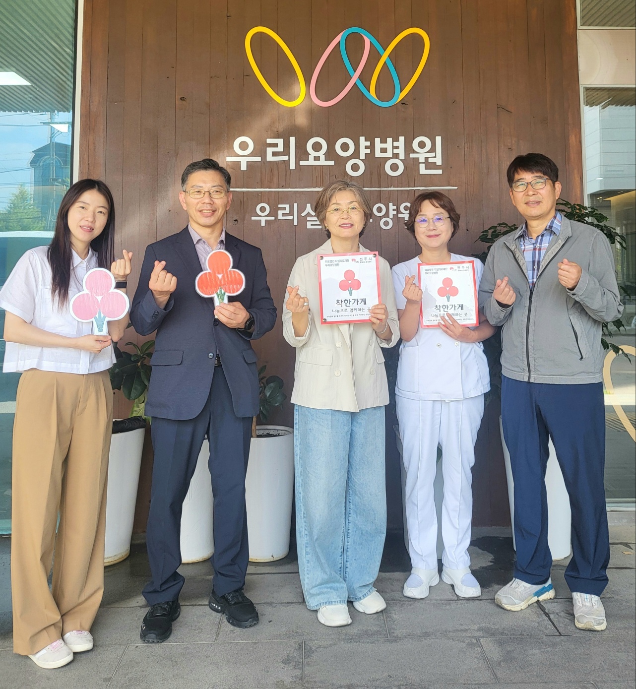 의료법인 디딤의료재단 우리요양병원(대표 박현정)과 전주시 인후1동 주민자치센터는 2024년 5월 23일 "착한가게" 현판식을 가졌습니다. 이번 현판식은 지역 사회의 나눔 문화 확산과 상생을 위한 협력의 일환으로 진행되었습니다.